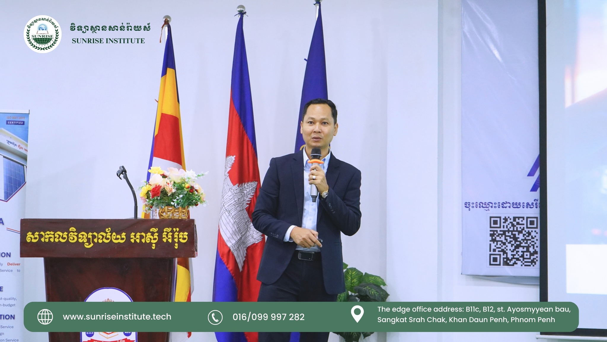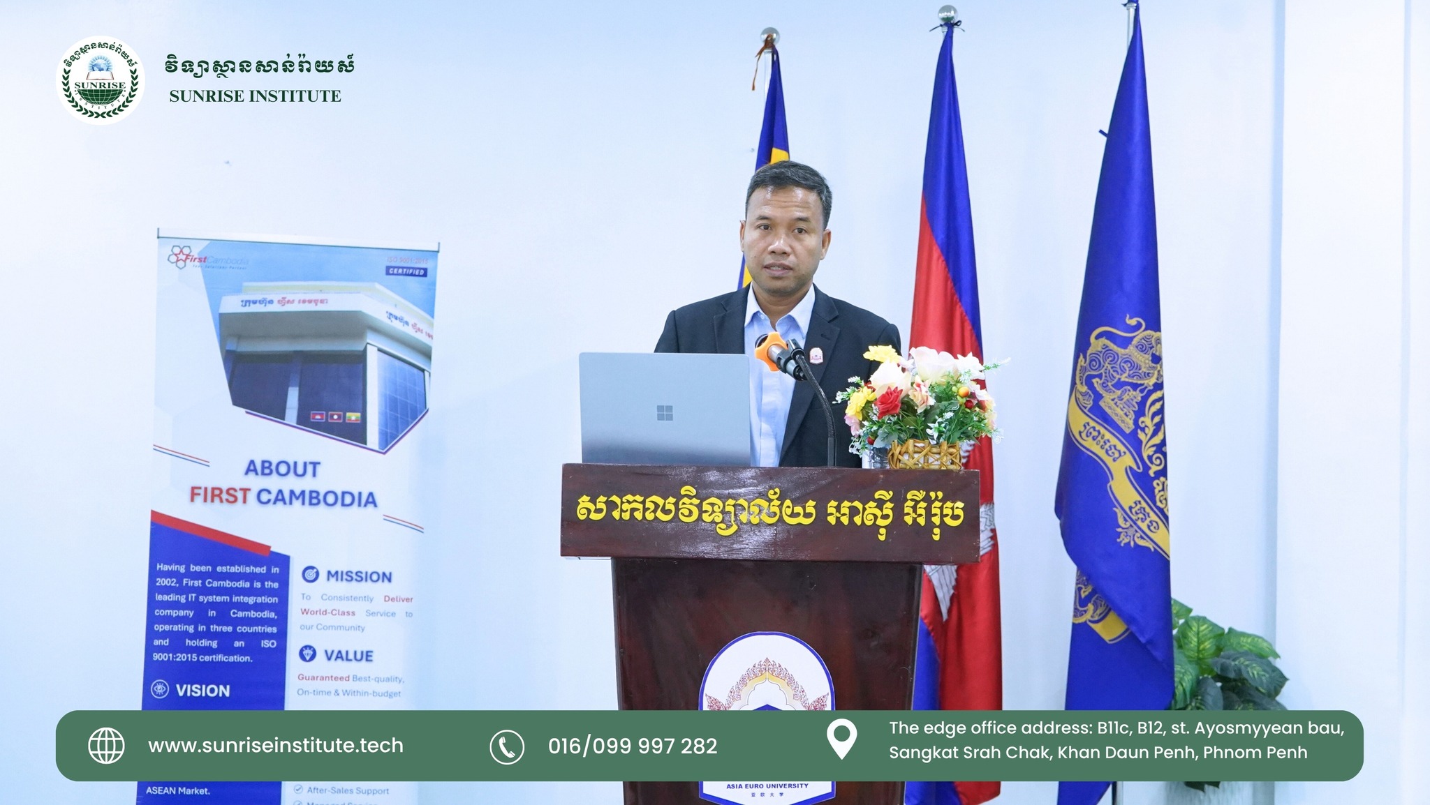 ឯកឧត្តម លោកបណ្ឌិត សុទ្ធ បូរិន សាកលវិទ្យាធិការរងនៃសាកលវិទ្យាល័យអាស៊ីអឺរ៉ុប ដែលនឹងថ្លែងសុន្ទរកថាបើក និងណែនាំពីទិដ្ឋភាពទូទៅនៃឱកាសក្នុងវិស័យ Cybersecurity។
